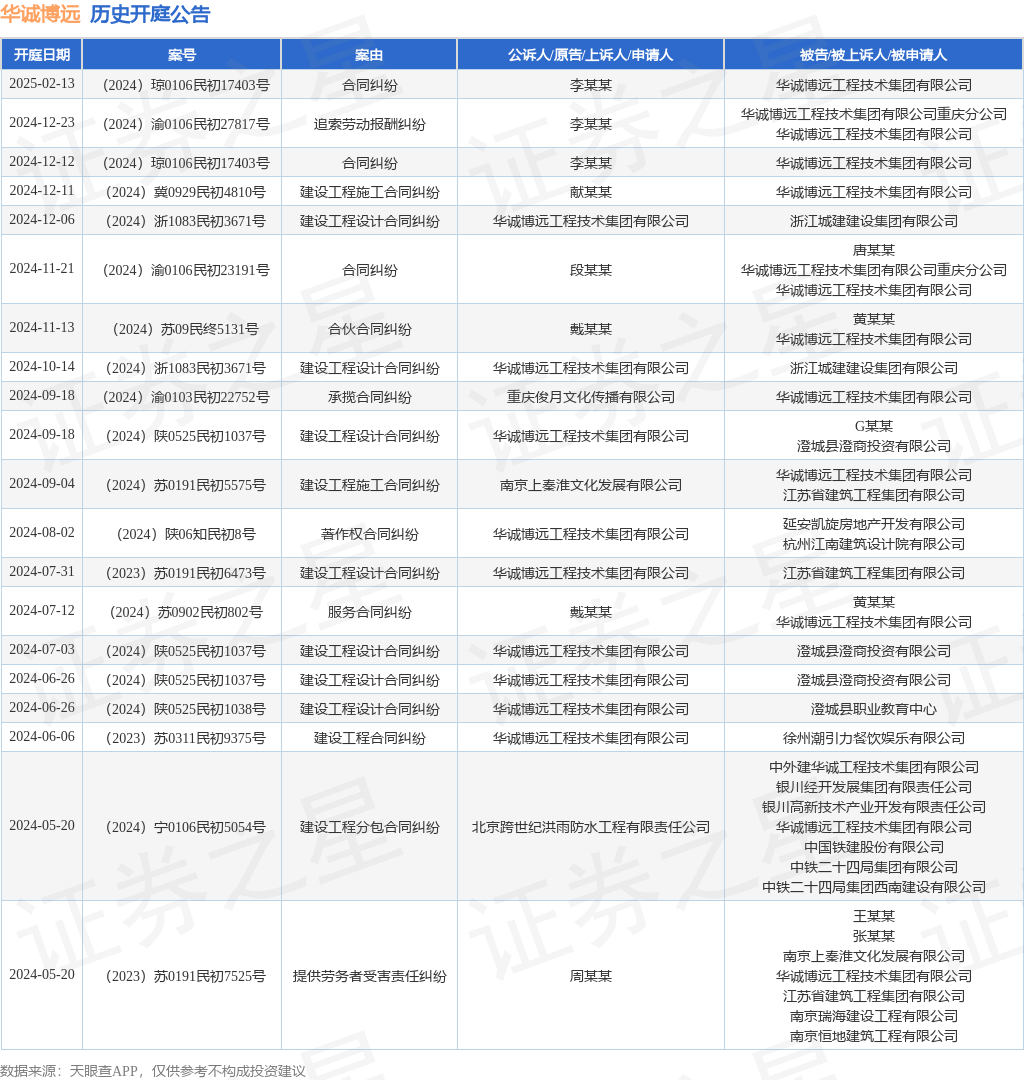 本站消息,根据天眼查APP显示,近日公布了一则华诚博远工程技术集团有限公司作为被告/被上诉人的开庭公告,详细内容如下: